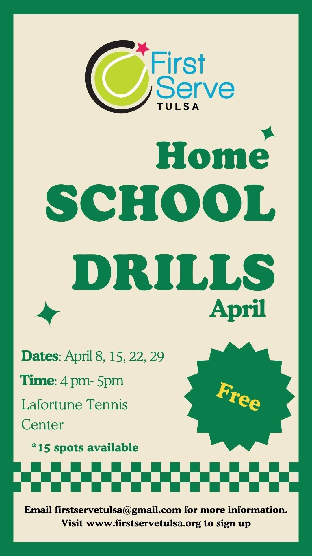 First Serve Tulsa is a nonprofit whose mission is to serve youth by teaching youth to serve. We provide free or low-cost tennis drills for underserved youth in Tulsa.